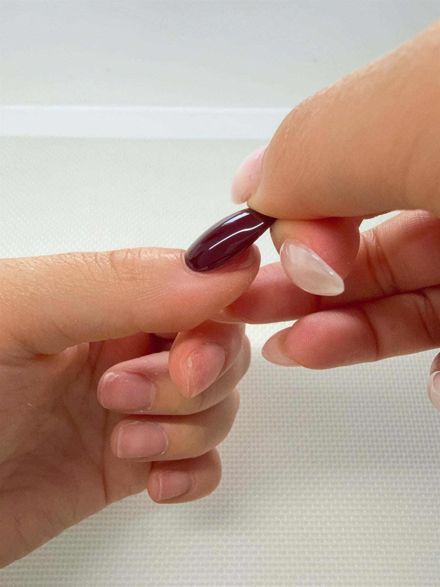 Hold down the nail firmly for 30 to 60 seconds to allow the glue to dry and adhere to the nail plate.