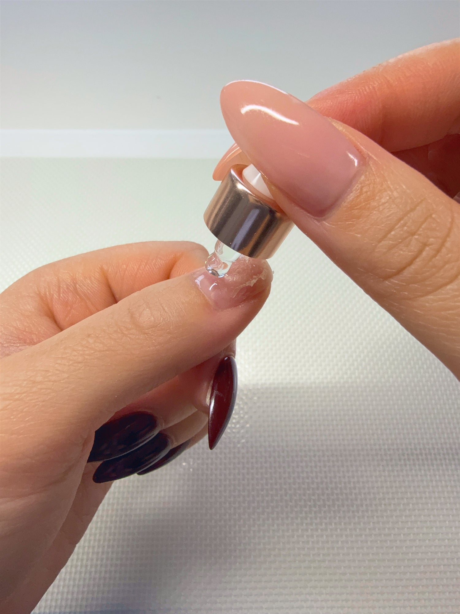 With the help of the cuticle oil, the sticky tab should come off cleanly in one piece. Repeat this process for the rest of your nails.