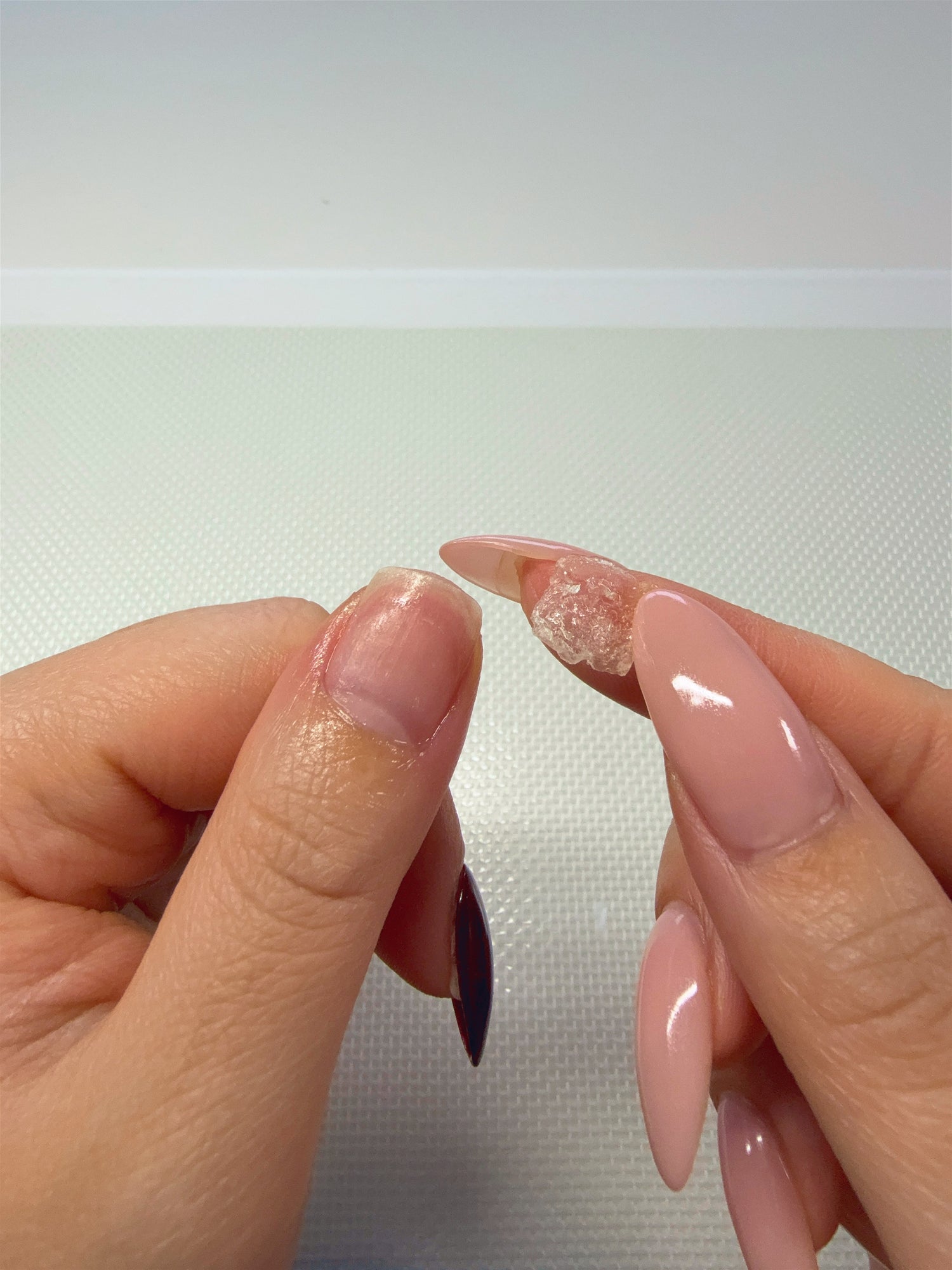 Once a good amount of separation has formed, you can peel off the rest of the nail slowly by hand.